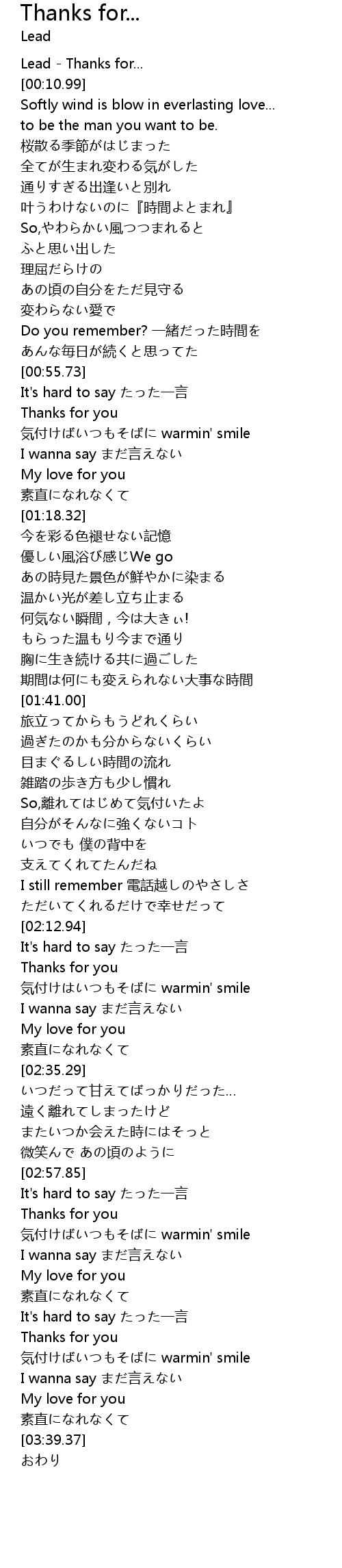 | [02:19.66] | 気付けはいつもそばに warmin' smile |