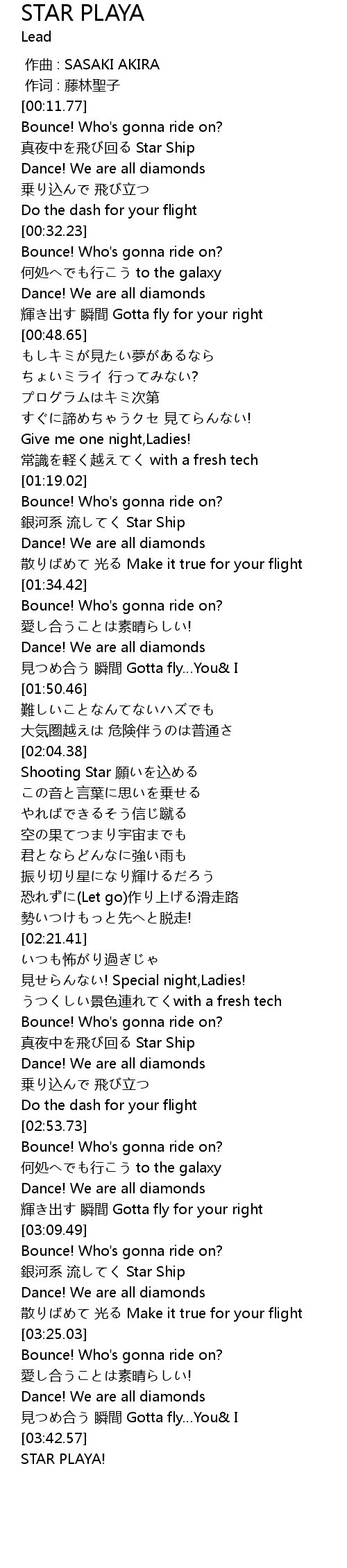 | [00:20.26] | 真夜中を飛び回る Star Ship |