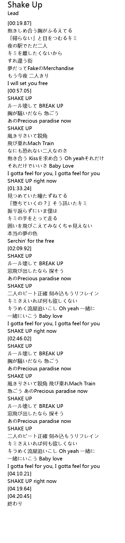 | [02:20.41] | 二人のビート正確 刻み込もうリフレイン |