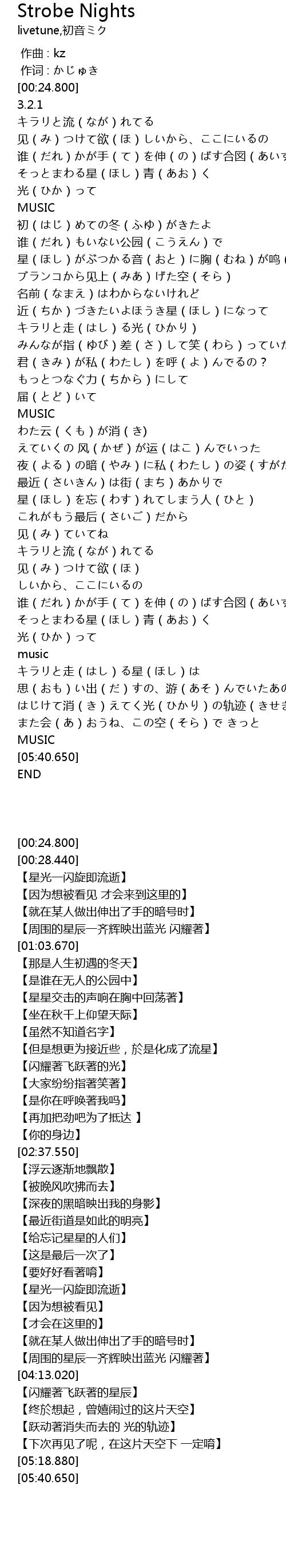 | [03:25.560] | 星(ほし)を忘(わす)れてしまう人(ひと) |