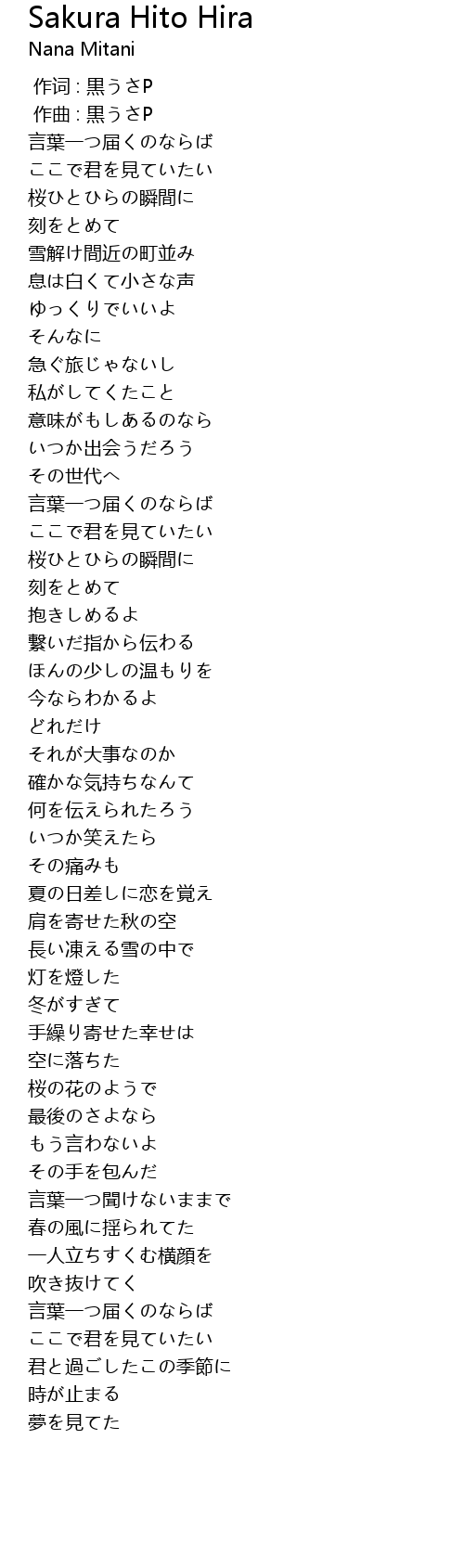 | [00:12.196] | 桜ひとひらの瞬間に |