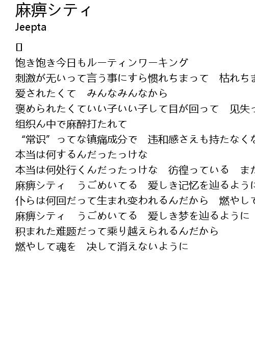 | Song | 麻痹シティ |