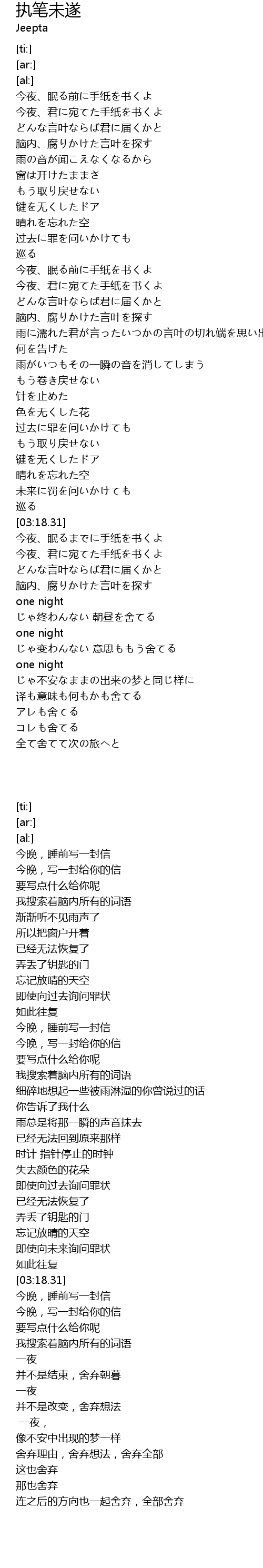 | [03:31.44] | 今夜、眠るまでに手纸を书くよ |