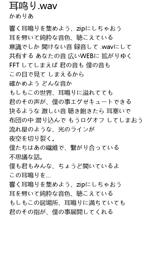 | [00:51.31] | 意識でしか 聞けない音 録音して .wavにして |