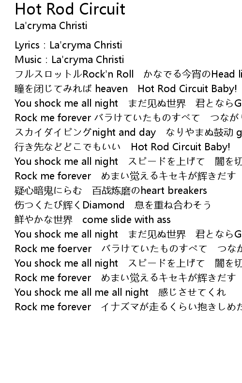 | You shock me all night スピードを上げて 闇を切り裂けば | |