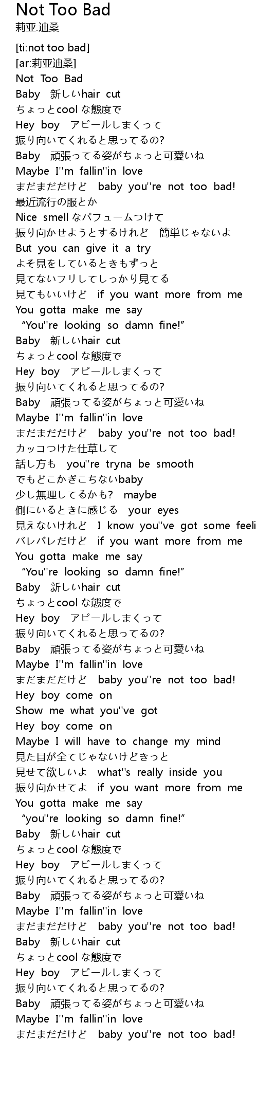 | [03:18.875] | まだまだだけど baby you''re not too bad! |