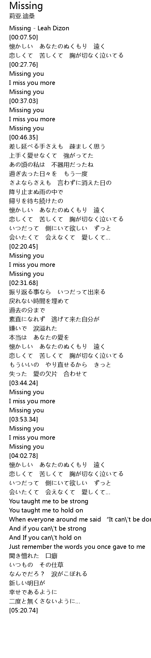 | [00:00.50] | Missing Leah Dizon |