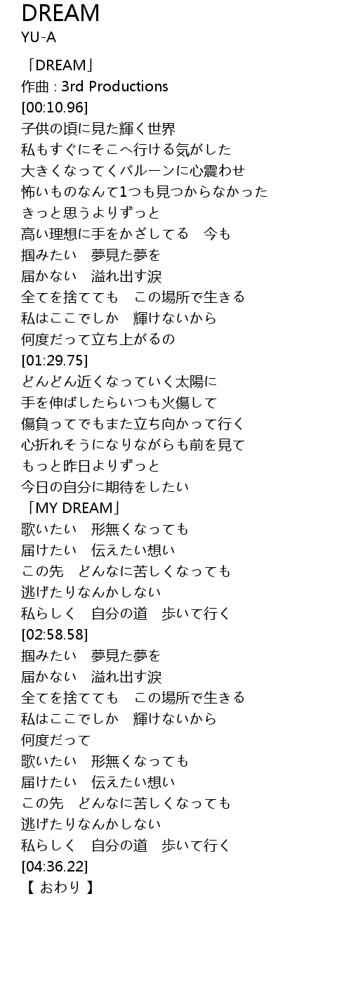 | [02:22.81] | 「MY DREAM」 |