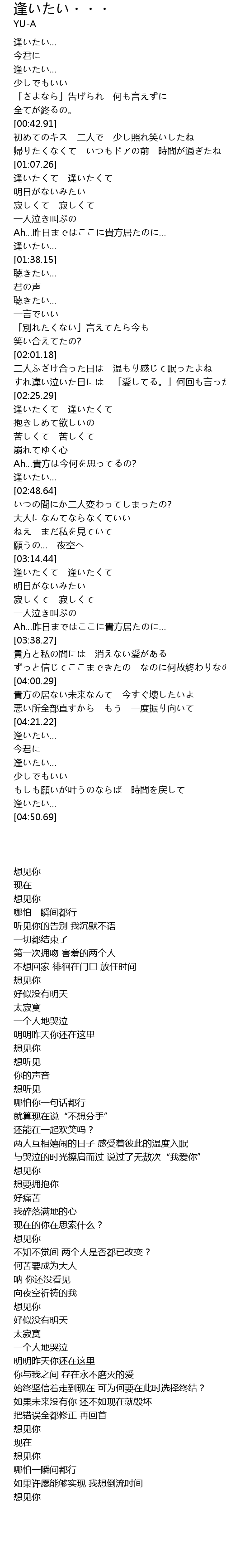 | [02:25.76] | 逢いたくて 逢いたくて |
