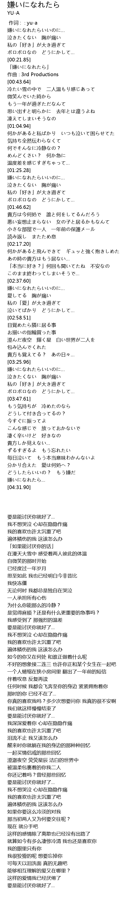 | [00:00.00] | 嫌いになれたらいいのに… |