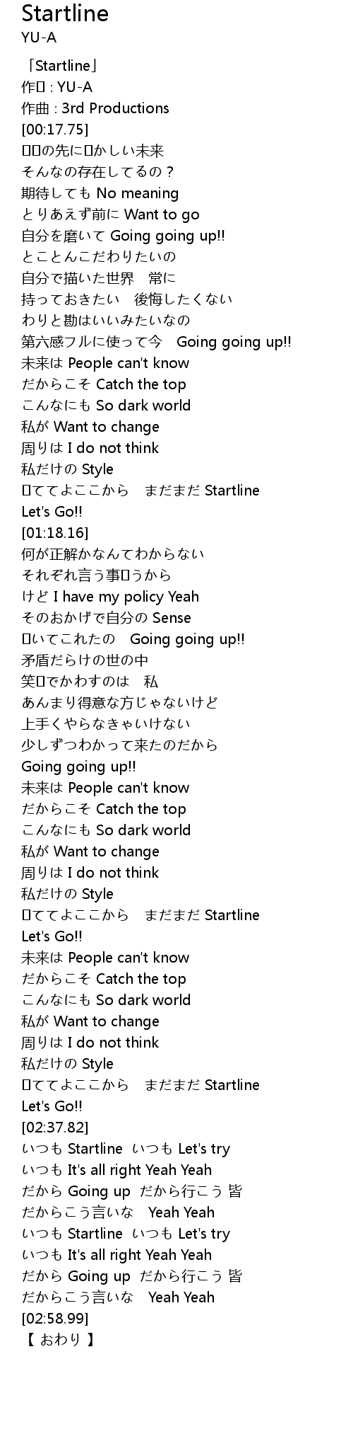 | [02:32.23] | �ててよここから まだまだ Startline |
