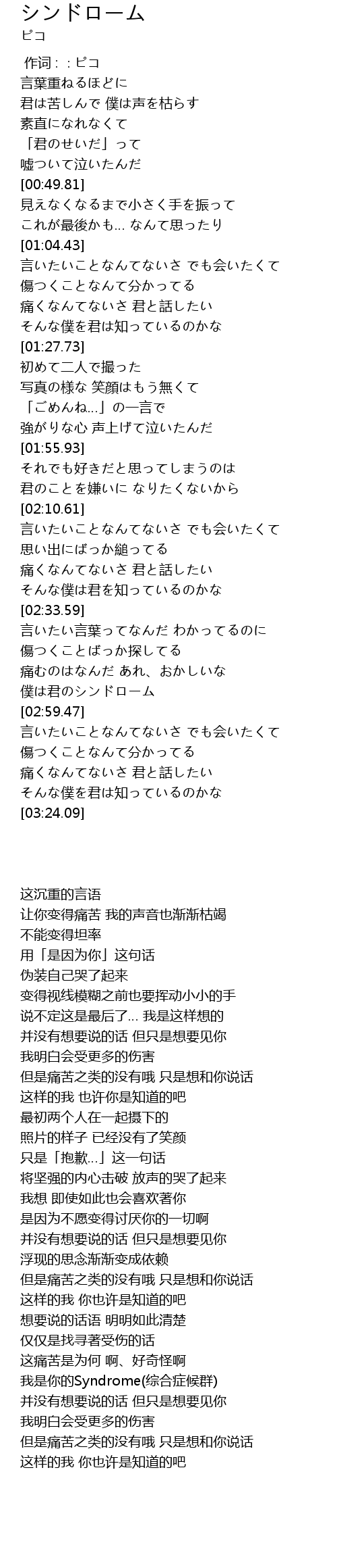 | [02:52.04] | 痛むのはなんだ あれ、おかしいな |
