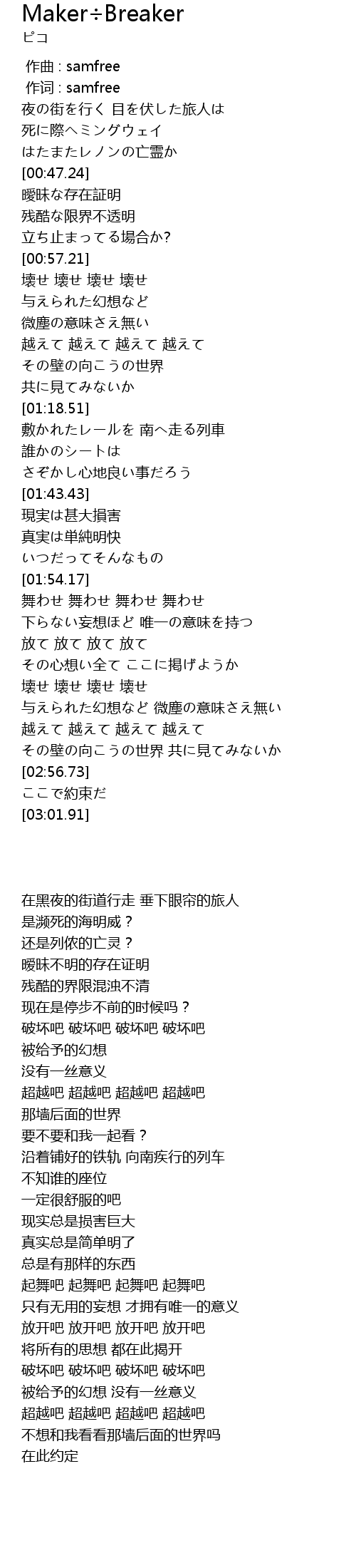| [00:58.60] | 壊せ 壊せ 壊せ 壊せ |