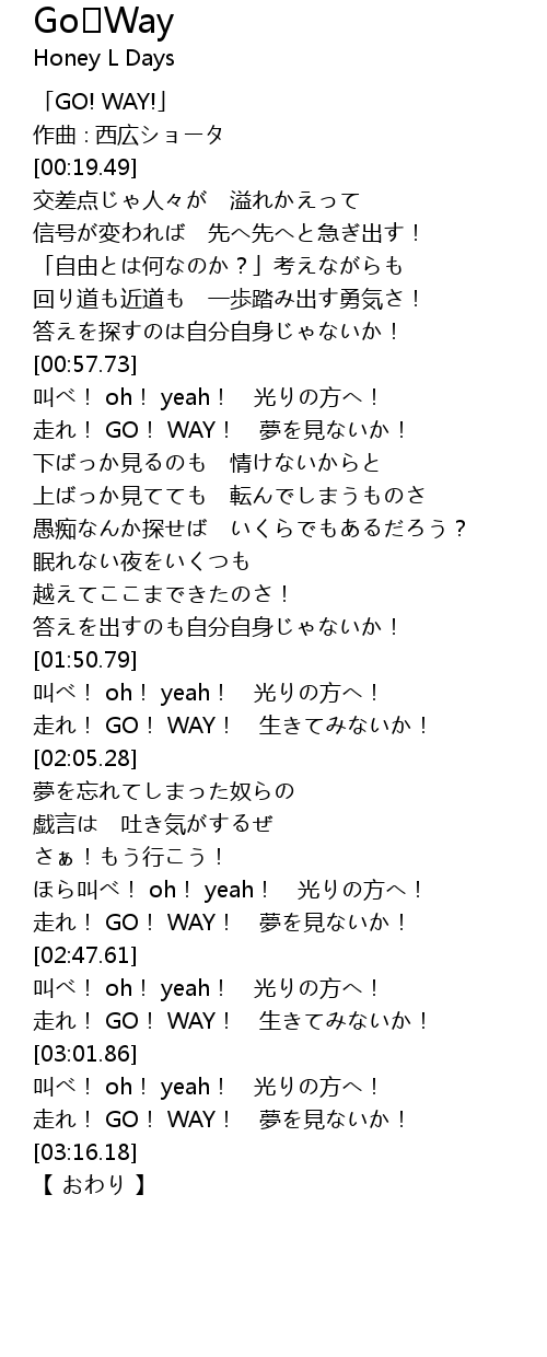 | [00:01.49] | GO! WAY! |