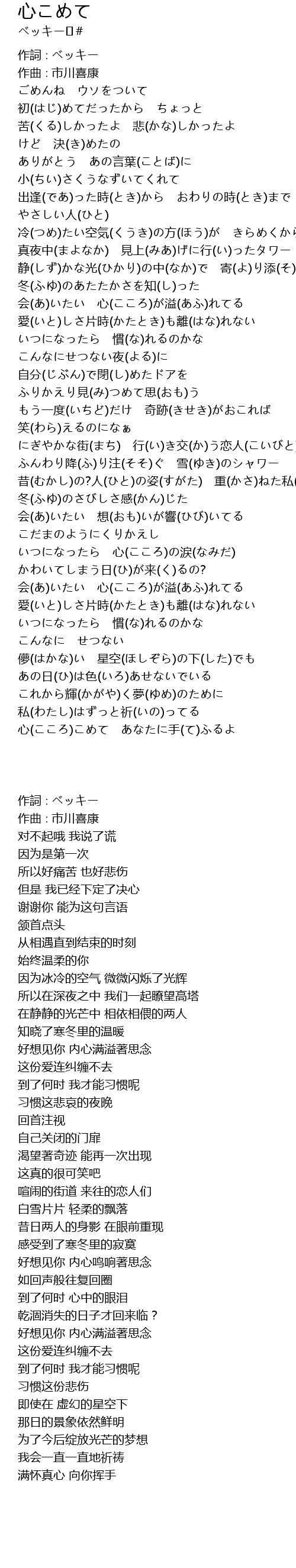 | [00:00.98] | 作詞∶ベッキー |