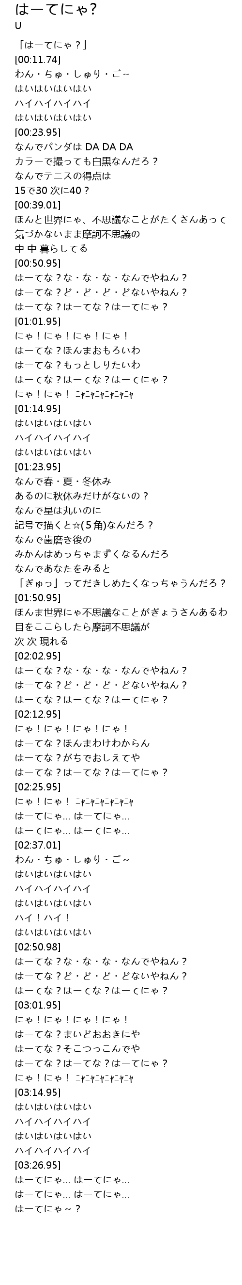 | [03:32.95] | はーてにゃ… はーてにゃ… |