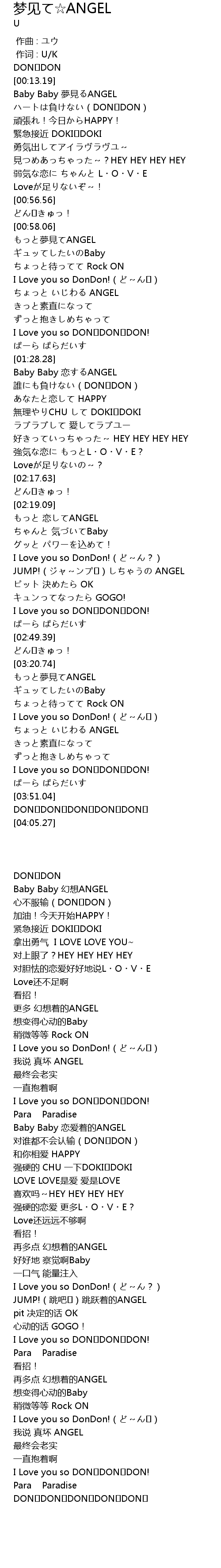 | [00:19.75] | Baby Baby 夢見るANGEL |