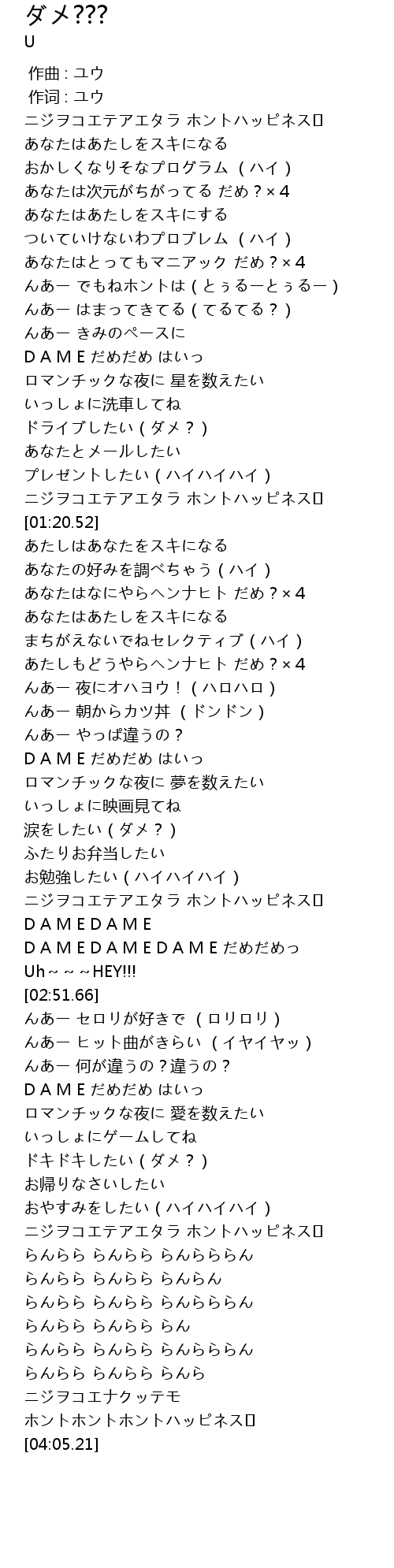 | [02:41.22] | D A M E D A M E D A M E だめだめっ |