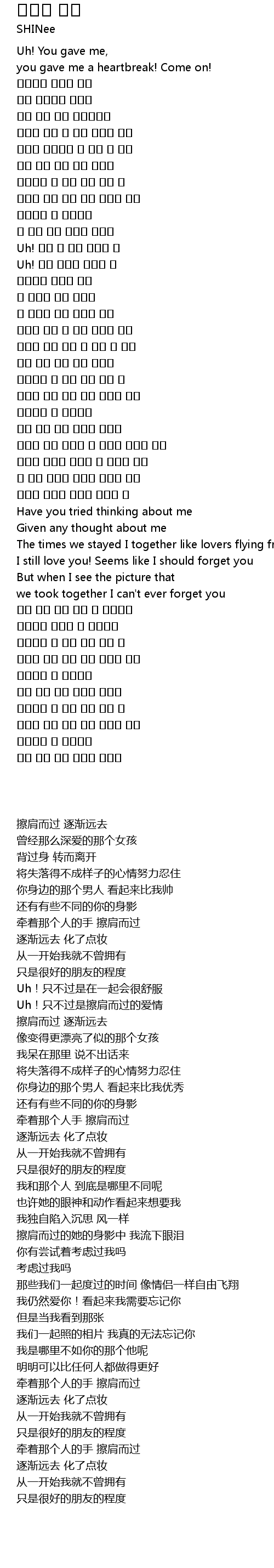 | [01:12.060] | Uh! 그저 스쳐간 사랑일 뿐 |