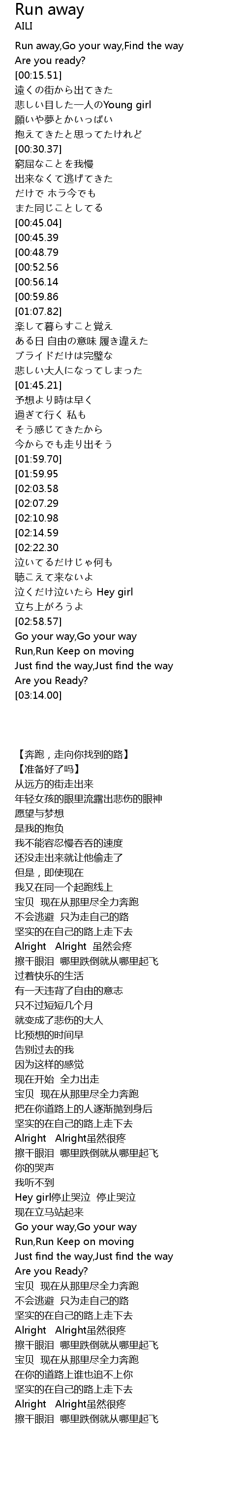 | [00:03.00] | Run away, Go your way, Find the way |