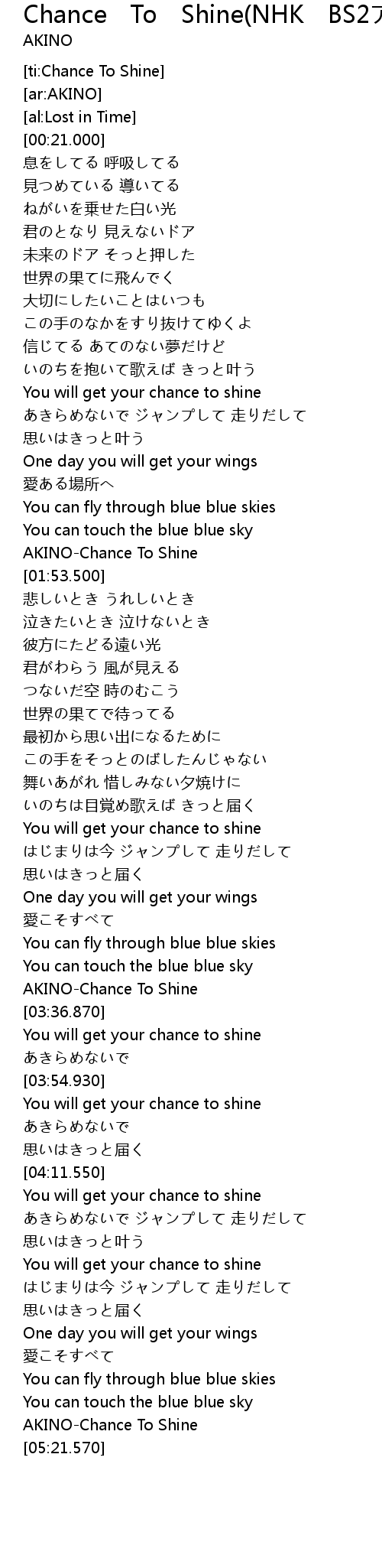 | [04:17.170] | あきらめないで ジャンプして 走りだして |