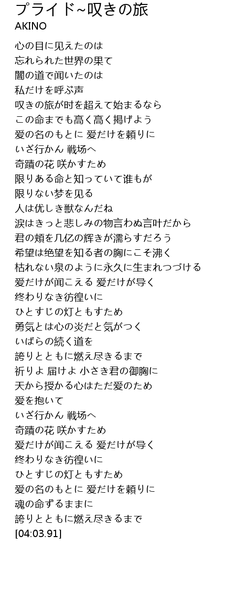 | [03:56.02] | 誇りとともに燃え尽きるまで |