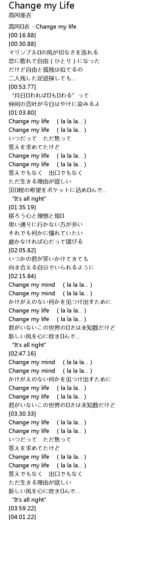| [00:01.88] | 高冈�衣 - Change my life |