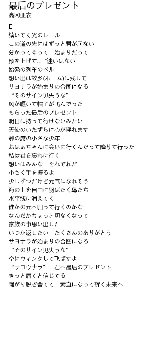 | “サヨウナラ” 君へ最后のプレゼント | |