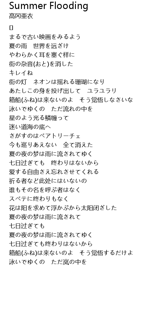 | 箱船(ふね)は来ないのよ そう觉悟するだけよ | |