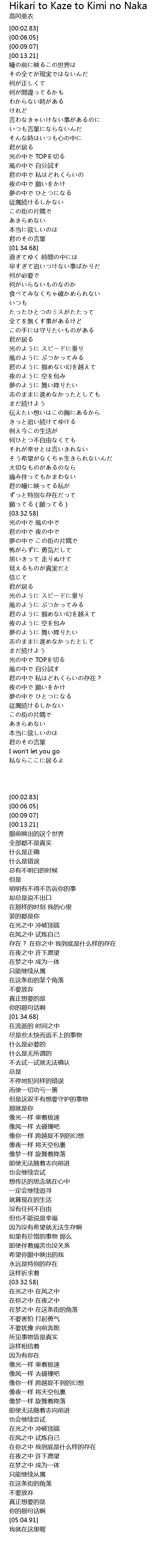 | [03:41.05] | 光の中で 風の中で |