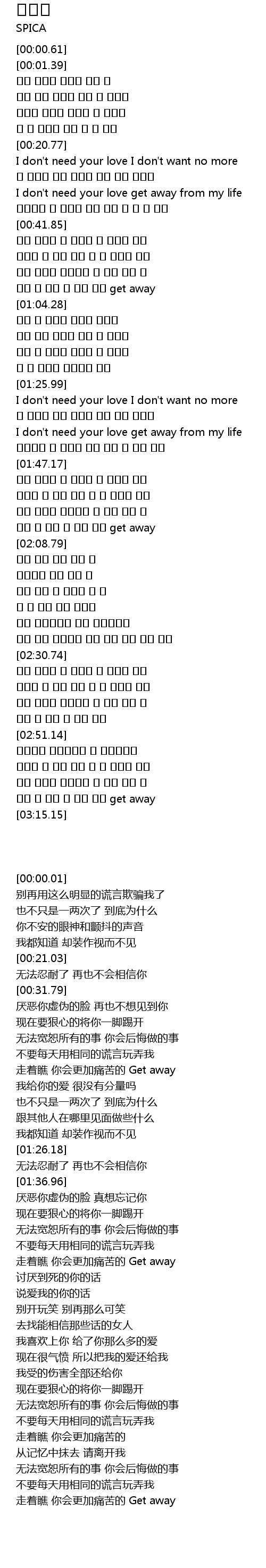 | [00:31.79] | I don't need your love get away from my life |