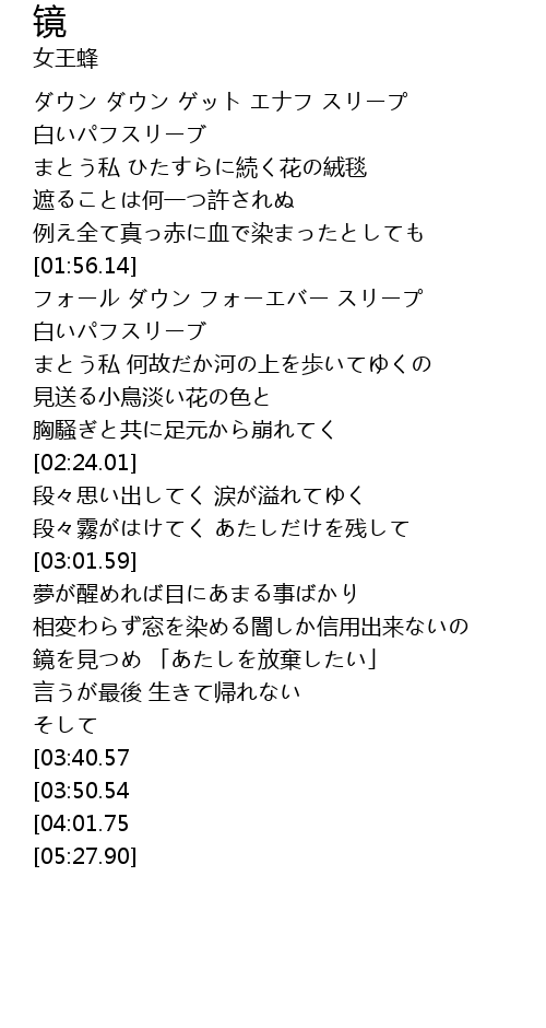 | [02:00.57] | フォール ダウン フォーエバー スリープ |
