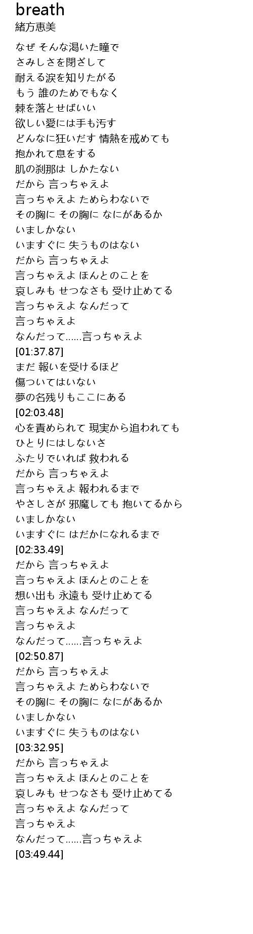 | [03:36.54] | 言っちゃえよ ほんとのことを |