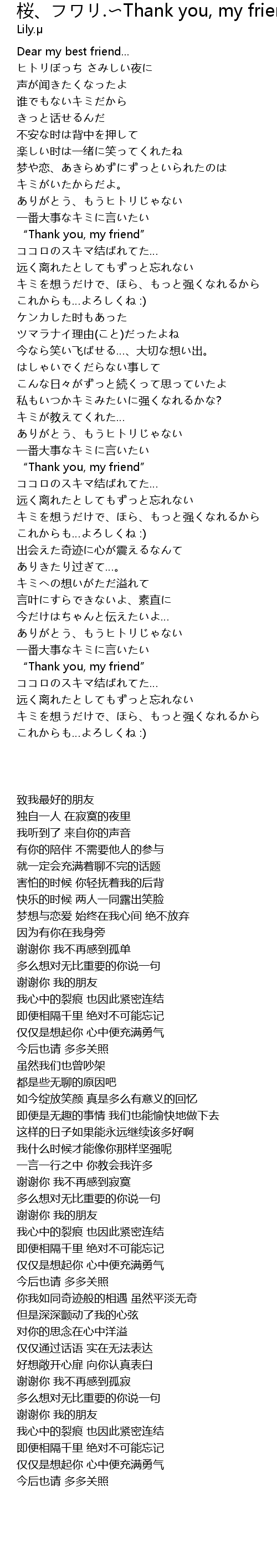 | Song | 桜、フワリ.〜Thank you, my friend〜 |