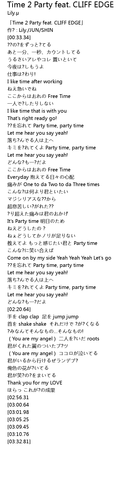 | [00:01.34] | 「Time 2 Party feat. CLIFF EDGE」 |