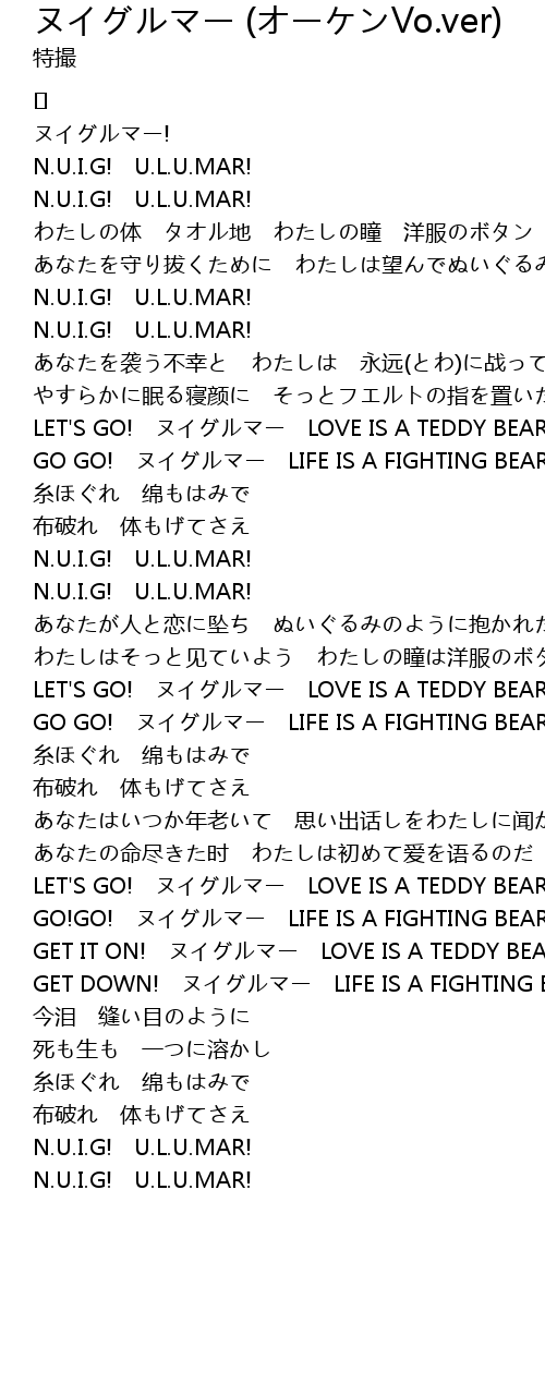 | Song | ヌイグルマー (オーケンVo.ver) |