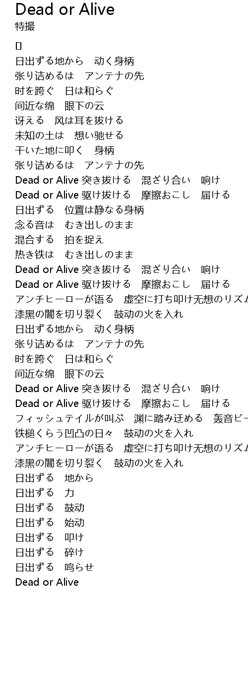| Dead or Alive 驱け拔ける 摩擦おこし 届ける | |
