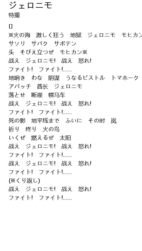 | ※火の海 激しく狂う 地狱 ジェロニモ モヒカン | |