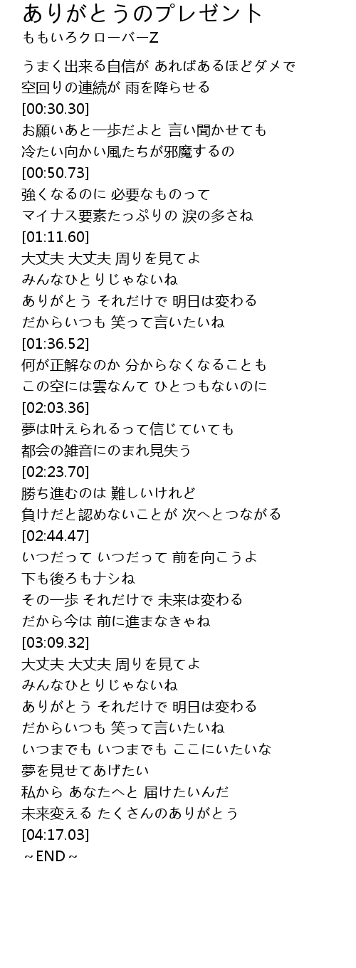 | [03:42.27] | ありがとう それだけで 明日は変わる |