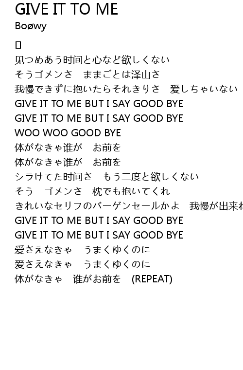 | GIVE IT TO ME BUT I SAY GOOD BYE | |