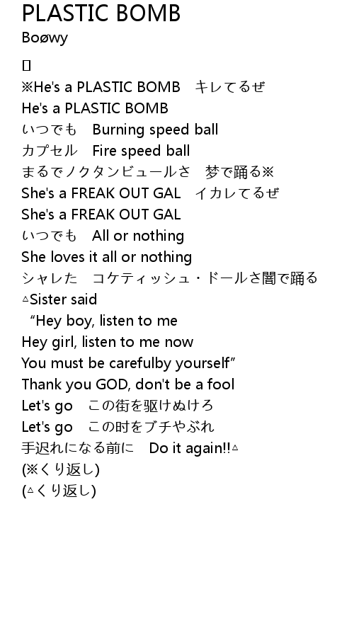 | ※He's a PLASTIC BOMB キレてるぜ | |