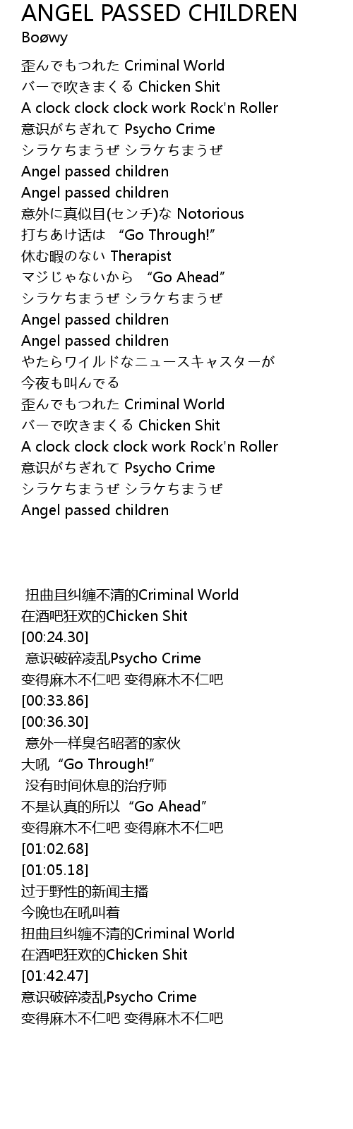| [00:19.47] | 歪んでもつれた Criminal World |
