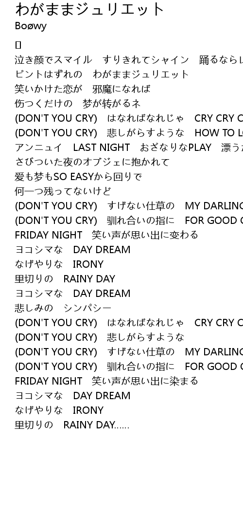 | 泣き颜でスマイル すりきれてシャイン 踊るならレイン | |