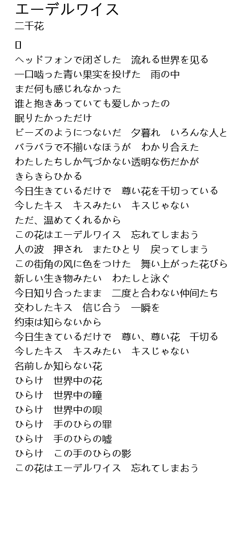 | この花はエーデルワイス 忘れてしまおう |