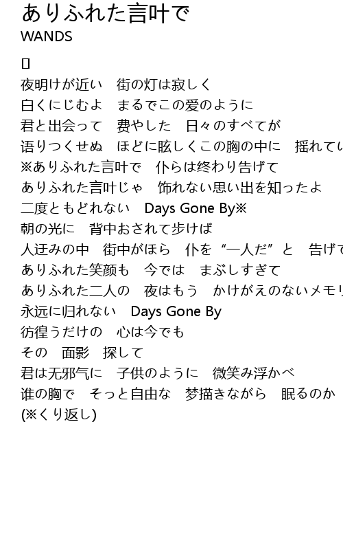 | ありふれた二人の 夜はもう かけがえのないメモリー | |