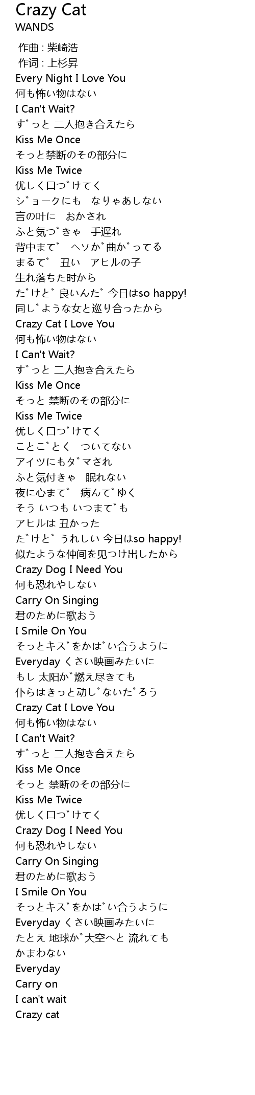| [01:22.727] | Crazy Cat I Love You |
