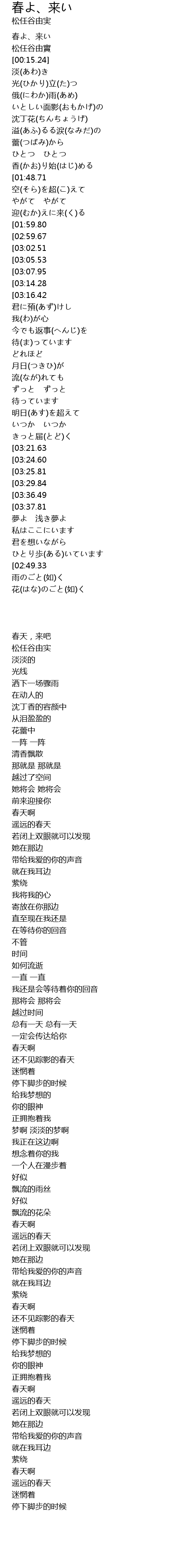 | [00:53.81][01:59.80][02:56.73][03:19.17][03:41.06][04:02.89] | 春よ |