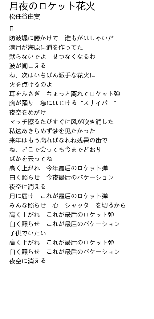 | Song | 月夜のロケット花火 |