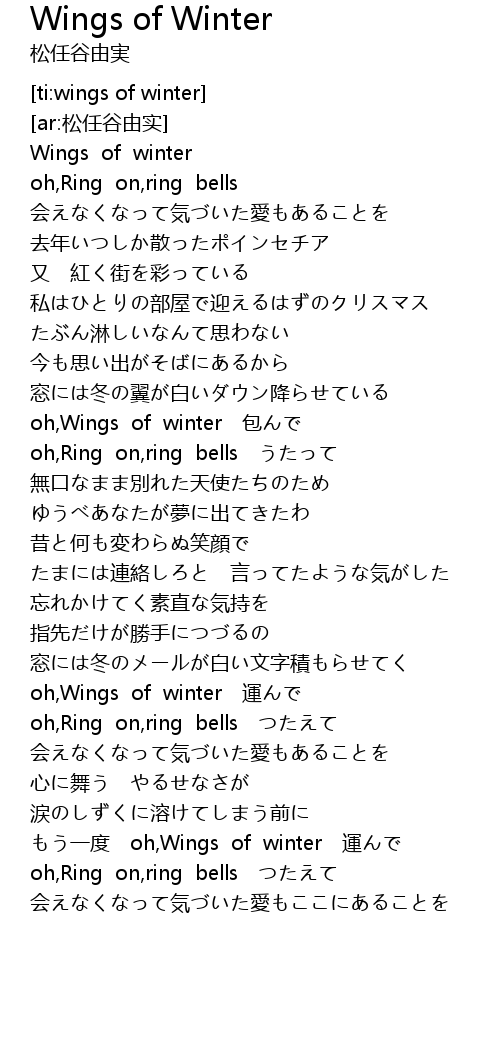 | [02:46.99] | もう一度 oh,Wings of winter 運んで |