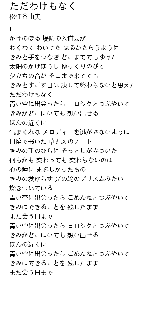 | Song | ただわけもなく |